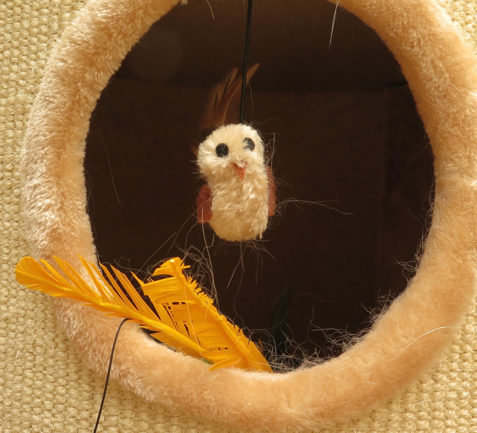 PoistaTuo lelu on kyllä hintansa hankkinut, koska vieläkään katit eivät ole siihen kyllästyneet, vaan Juju oikein kerjää, että sillä pitää saada leikkiä. Olen lennättänyt Feeniksiä monta kertaa päivässä, ja kun mies oli viime viikolla sairaana kotona, niin Juju oli mennyt omin lupineen pudottelemaan lintua hyllyn päältä, kun tahtoi leikkiä sillä. :) Kyllä mama ostaa siihen siis vaihtopäänkin, maksoi mitä maksoi. :-D